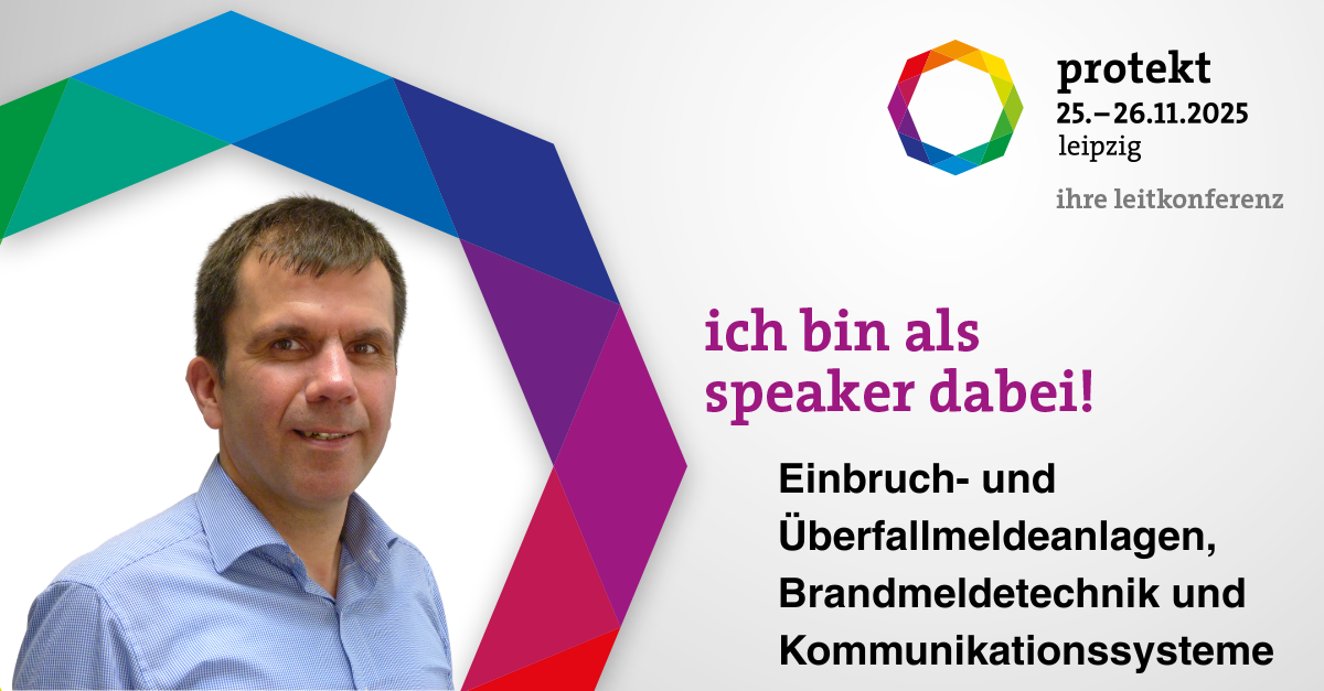 Am Dienstag, den 25. November, von 11:30 bis 12:35 Uhr, im Goethe-Saal der Kongresshalle am Zoo Leipzig, hält unser Geschäftsführer Uwe Schmeißner den dritten Vortrag des Workshops. Im Mittelpunkt stehen hier vor allem Einbruch- und Überfallmeldeanlagen, Brandmeldetechnik sowie Kommunikationssysteme, mit denen kritische Einrichtungen effektiv geschützt werden können.
